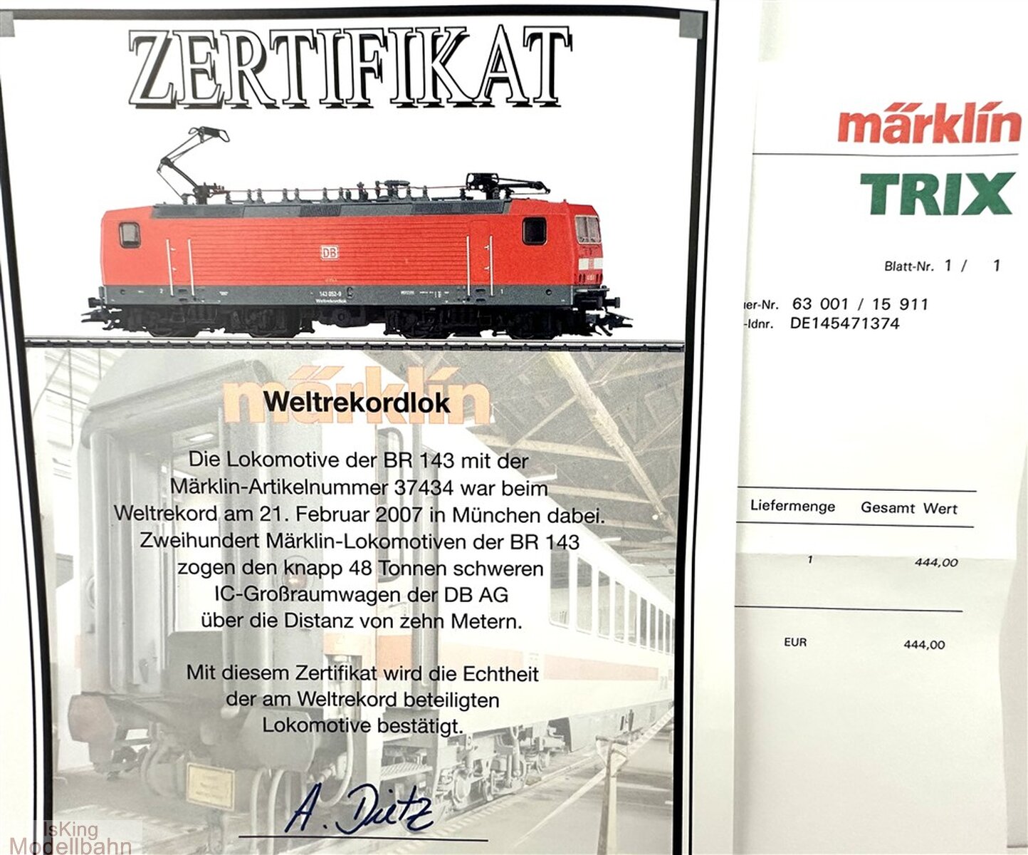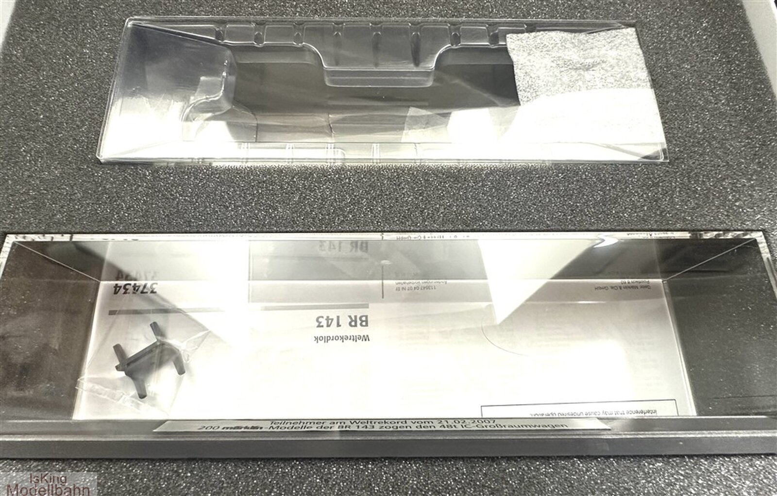 Verpackung mit Anleitung. Präsentationsvitrine mit Echtheitszertifikat.