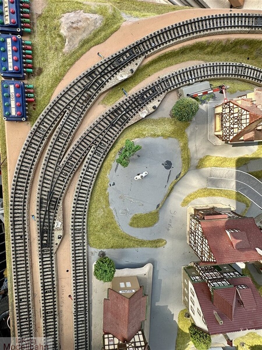 Weichen schalten manuell. Anlage mit Gebrauchsspuren.