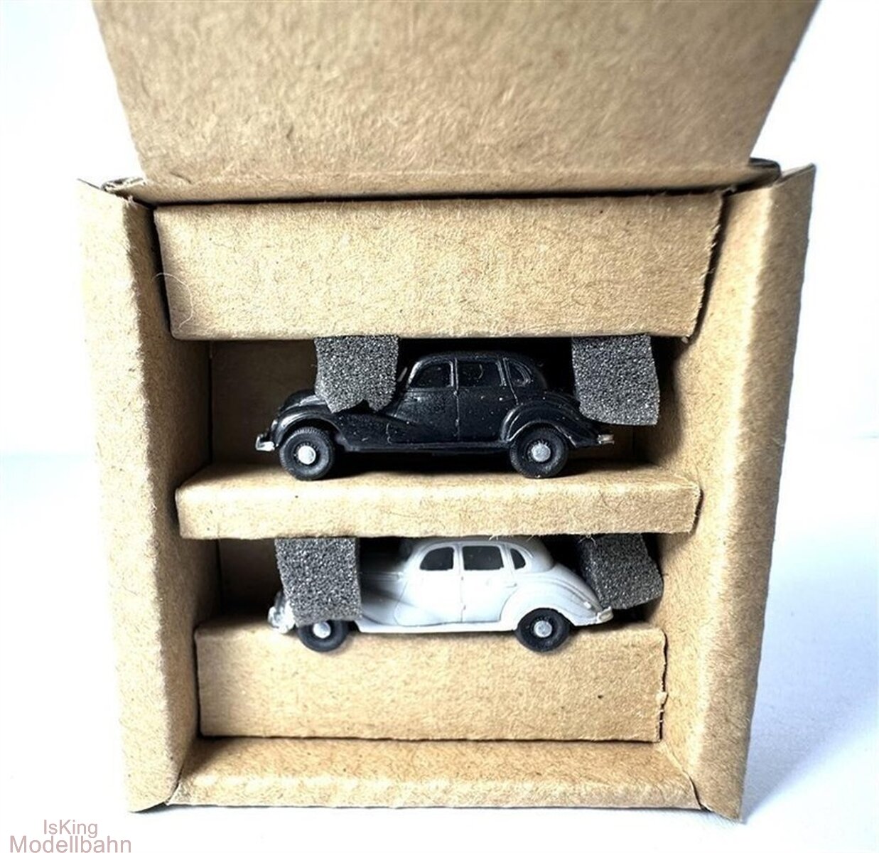 Maßstab 1:160. 2 Fahrzeug-Modelle grau / schwarz aus Kunststoff.